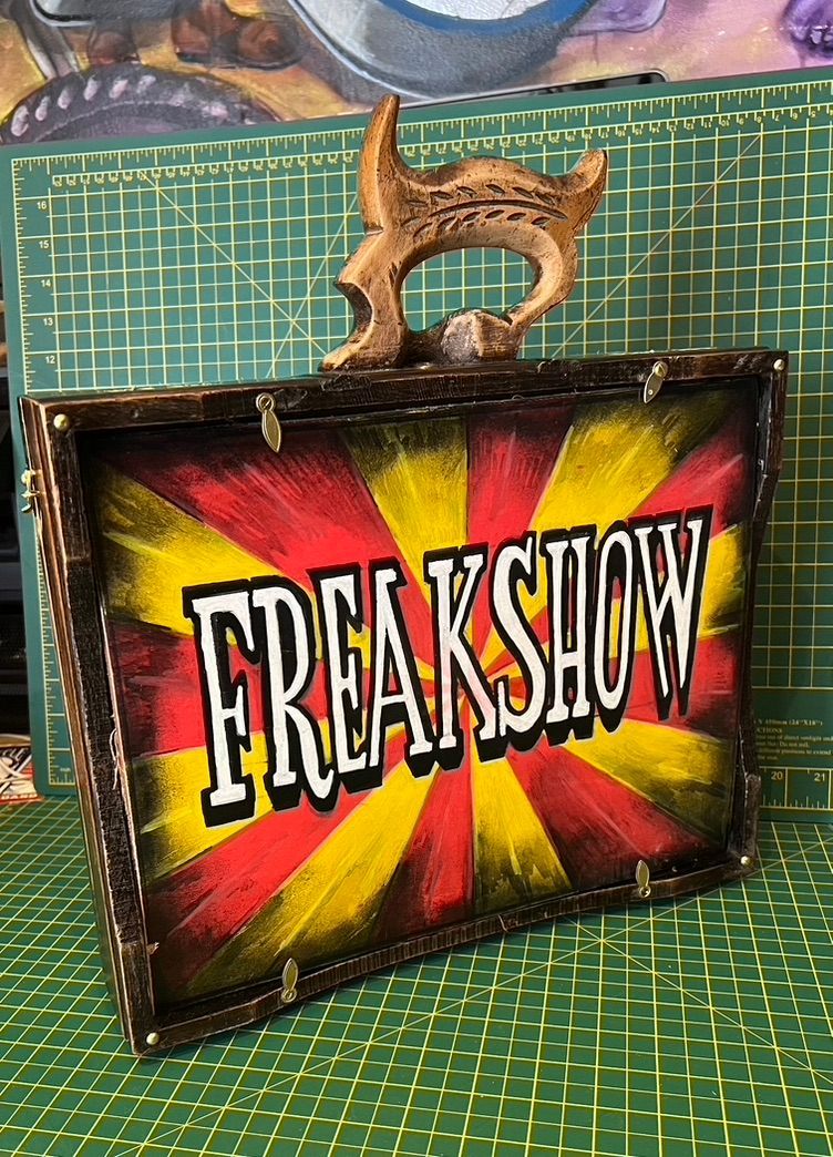 I have had a reasonable portfolio of paintings, commissions and props that hang around this globe. I was even unusually commissioned to hand paint a fairground themed coffin at very short notice for an imminent funeral !